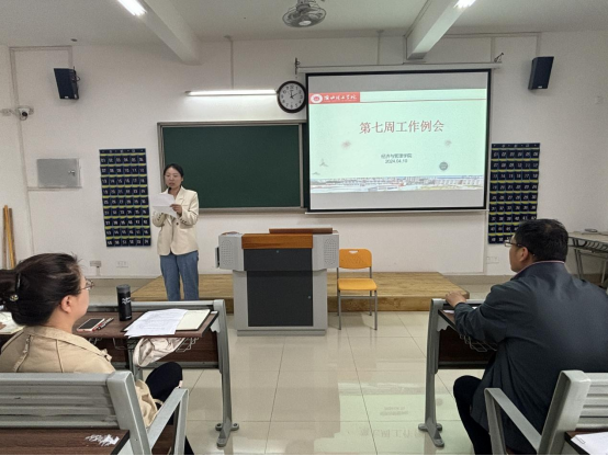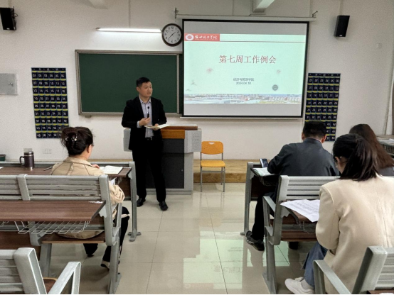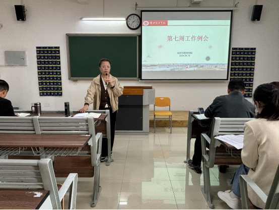 2024年4月10日下午,永利304官网唯一在一教213召开永利304官网唯一第七周工作例会,院长吴玲主持会议,副院长秦品德、院长助理张珊以及全体教师参会。