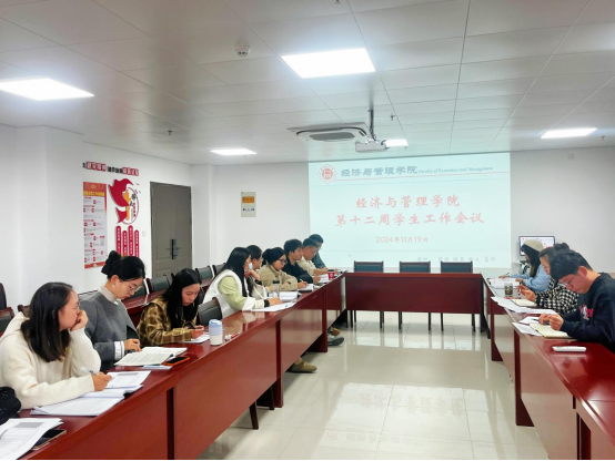 2024年11月19日,永利304官网唯一在行政楼725会议室召开本学期第十二周学生管理工作例会,学院书记助理叶赵强、团总支书记员禹辛及全体辅导员参会,会议由吴玲院长主持。