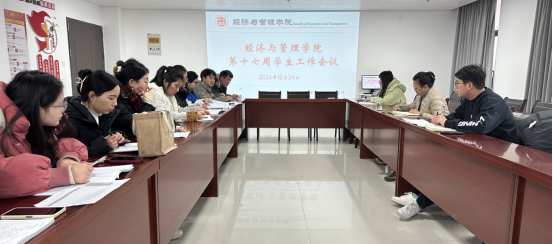 2024年12月24日,永利304官网唯一在行政楼725会议室召开了本学期第十七周学生管理工作例会。学院书记助理叶赵强、团总支书记员禹辛及全体辅导员参会,会议由院长吴玲主持。
