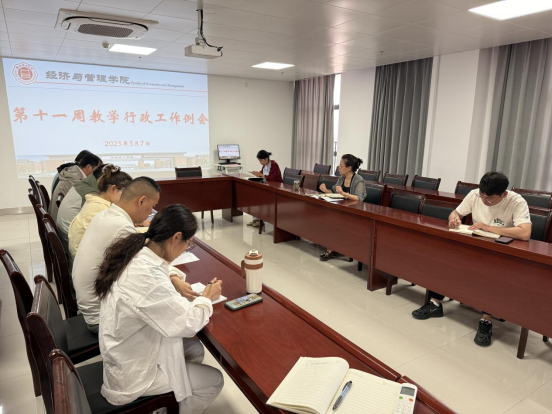 5月7日上午,永利304官网唯一在行政楼725室召开第十一周行政工作例会,院长吴玲主持会议,院长助理张珊、叶赵强,教学秘书李健及各教研室主任参会。