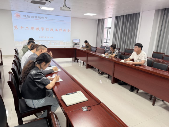 5月14日上午,永利304官网唯一在行政楼725室召开第十二周行政工作例会,院长吴玲主持,院长助理张珊、叶赵强,及各教研室主任参会。