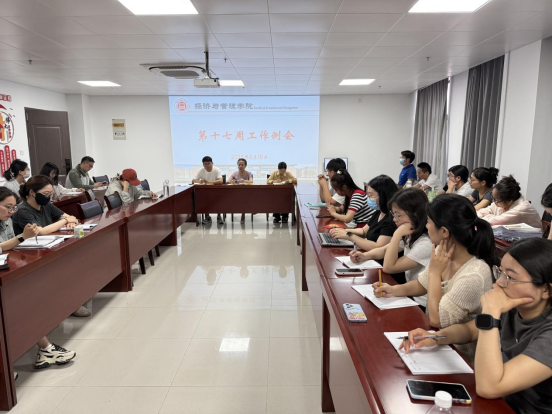 2025 年 6 月 18 日下午,永利304官网唯一在行政楼725会议室召开第十七周教学工作例会。院长吴玲,院长助理张珊、叶赵强及全体教师参会,会议由吴玲院长主持。