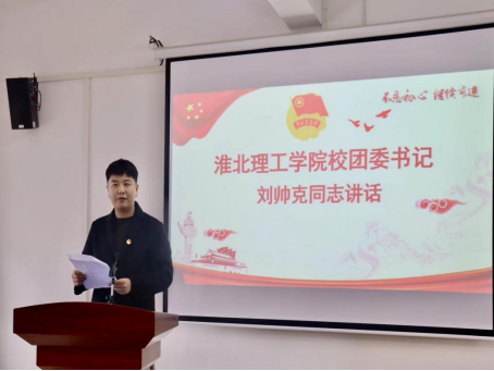 校团委书记刘帅克代表学校向大会的召开表示热烈祝贺,向全体团学代表致以亲切的问候。他高度赞扬了经济管理与建筑工程学院团总支一年来的工作成绩,同时对学生代表提出三点希望:一、广大青年要好好学习,努力工作,拼搏奋斗,争做实现中华民族伟大复兴的主力军;二、要坚定理想信念,把握正确方向,成长为有理想、敢担当、能吃苦、肯奋斗的新时代好青年;三、要刻苦学习进步,多读书、读好书,学理论、学文化、学科学、学技能。肩负使命,共同谱写淮北理工学院共青团工作的新篇章!