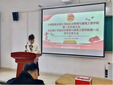 11月23日下午,共青团淮北理工学院经济管理与建筑工程学院在二教422室召开第一次代表大会、淮北理工学院经济管理与建筑工程学院第一次学生代表大会。淮北理工学院校团委书记刘帅克、副书记倪鹏臻、马克思主义学院与经济管理学院党总支书记吴玲、经济管理与建筑工程学院共青团代表及学生代表共同出席本次大会,本次会议由经济学学生支部书记员禹辛主持。