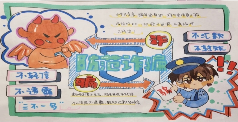 首先各班积极落实班级范围内的宣传教育活动,班长利用晚自习的时间在班级开展〝防诈骗”主题特色班会,正面引导学生思想,增强防范意识,使每位同学都熟知电信诈骗的技俩和手法,同时结合案件说明,加深同学们的印象,并要求对每位同学都能在自己了解的同时能够给家人、朋友普及防电信诈骗知识,以提高防骗拒骗能力。通过班会教育,积极宣传了防范电信诈骗和防范应对措施,增强同学们的电信诈骗认知和风险意识教育,向同学们宣传“三不一要”防范措施,即三不:不轻信、不冲动、不转账;一要:要及时报警。