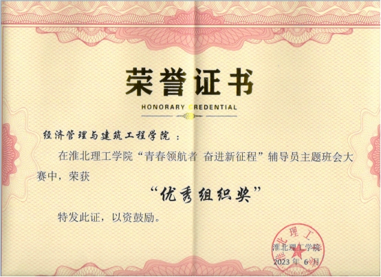 6月20日,淮北理工学院学生处在1号教学楼210教室举办校第一届辅导员主题班会大赛决赛,经济管理与建筑工程学院辅导员在参加本次决赛中,表现出色,斩获前三名的好成绩,并获得唯一的优秀组织奖。