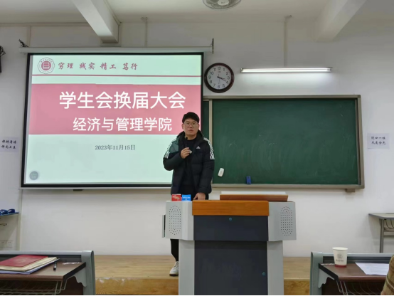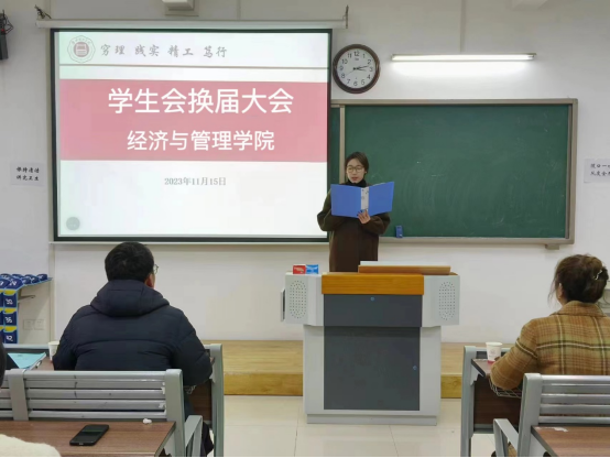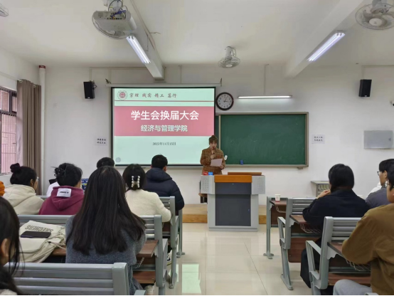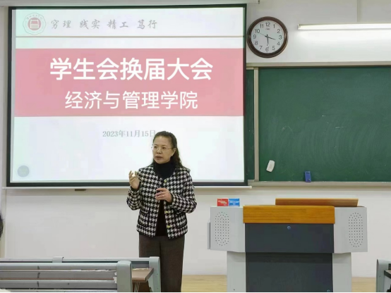 吴玲院长在讲话中对学生会换届的成功举办和新加入的学生会成员表示祝贺,同时对往届学生会的出色工作表示高度赞扬,并对新一届的学生会成员做出了殷切的期望。希望同学们严格要求自己,努力提高自身素质;要树立服务意识,加强团队沟通,创新性开展学生工作;要不断提升学生工作的素养,为打造一流的学生会而努力。学生会成员的称号既是一种荣誉更有一份责任,要保持奋斗精神和创新工作的理念,不断提升为经管学子服务能力和团队的整体水平,为学院的特色发展作出新的更大贡献。