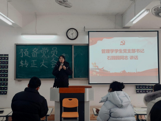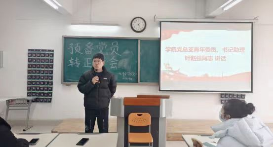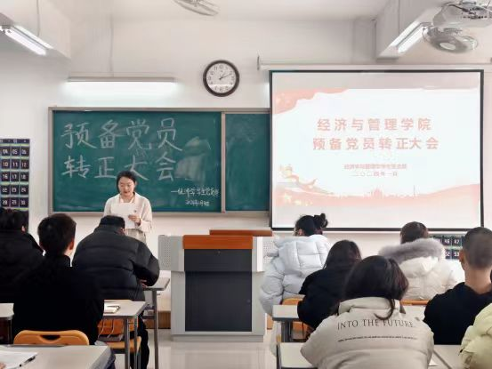 2024年1月9日,永利304官网唯一学生支部在二教323教室召开预备党员转正大会。书记助理叶赵强、组织员王胜男、经济学学生党支部书记员禹辛、管理学学生党支部书记石园园以及全体学生党员参加本次会议,会议由丁阳主持。