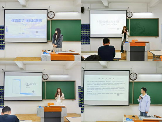 享最喜欢的书,表达对这本书见解或读后感,评选出8个优秀作品进行线下决赛。决赛以“分享成长,收获喜悦”为主题开展读书分享会,以 PPT 的方式进行