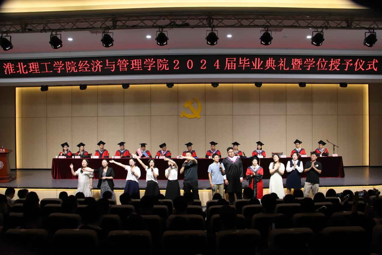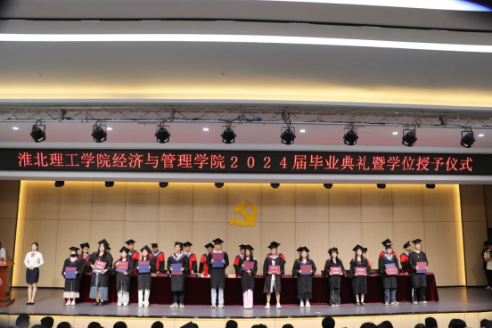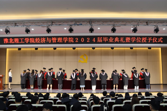 永利304官网唯一副院长秦品德宣读2024届《淮北理工学院本科生学士学位授予决定》,恭贺学院358名同学顺利毕业获得学士学位。
