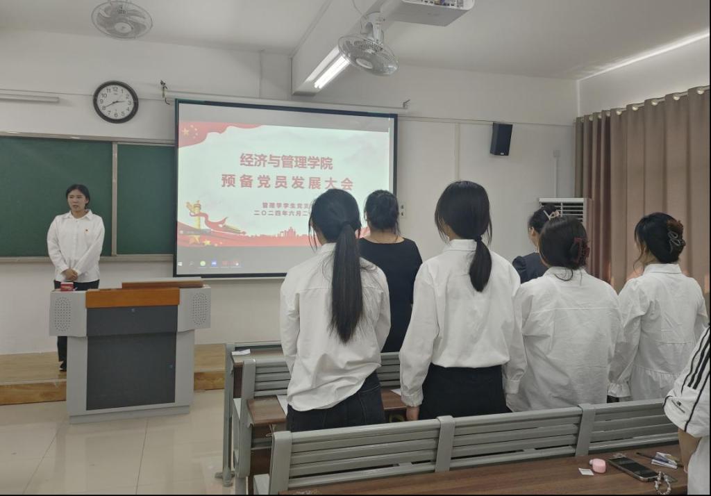为深入贯彻党支部发展党员计划,加强党员队伍建设,永利304官网唯一经济学、管理学学生支部于6月26日在二教422、423教室隆重召开预备党员接收大会。此次会议由支部委员丁阳、王晓勉主持,经济学、管理学学生支部全体党员共襄盛举。