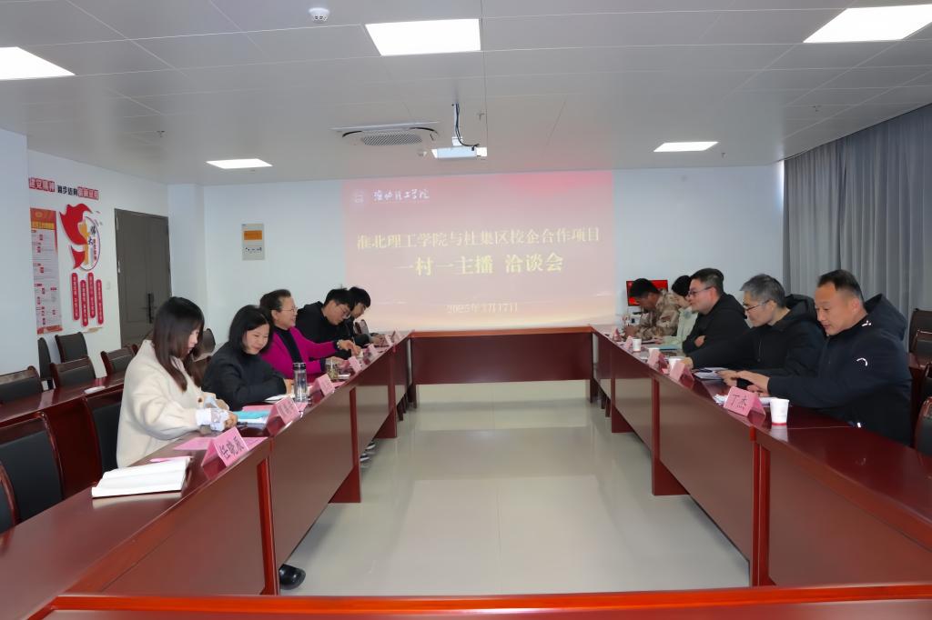 3月17日下午,淮北理工学院永利304官网唯一与杜集区围绕校地合作项目“一村一主播”在行政楼7楼725会议室举行洽谈会。杜集区老干部管理服务中心副主任王君,段园镇党委委员、组织委员常迟,杜集区组织部工作人员姚萍,朔里镇段庄村党总支书记、村委会主任丁杰,石台镇梧桐村党总支副书记、村委会副主任孙召等出席会议;永利304官网唯一院长助理张珊、叶赵强,书记助理员禹辛,教学秘书李健,团总支书记王绎程等参加会议,院长吴玲主持会议。