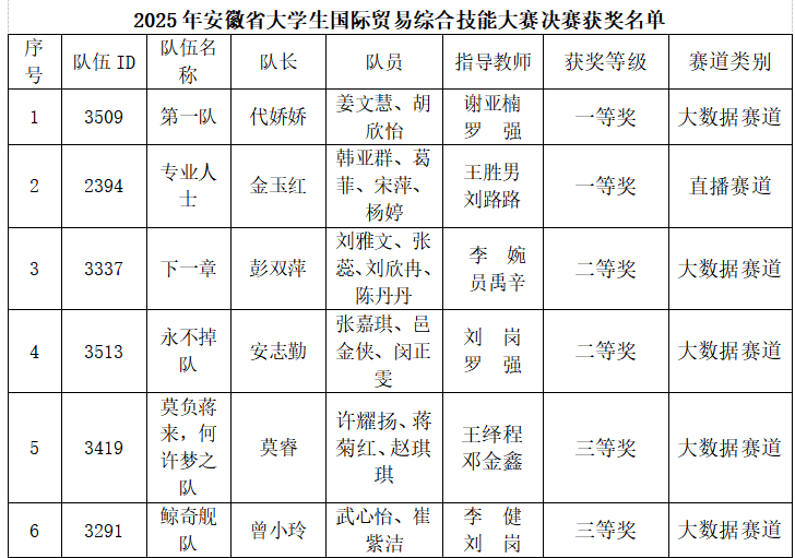 2025年安徽省大学生国际贸易综合技能大赛现场总决赛于6月11日在安徽蚌埠圆满结束。永利官网进入总决赛的两支团队不畏强手、勇于拼搏,在两个不同的赛道里双获“一等奖”!