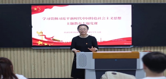 为深入推进学习贯彻习近平新时代中国特色社会主义思想主题教育工作,根据学校主题教育工作安排,6月7日下午,校纪委书记、副校长汪建利到永利304官网唯一教工党支部讲授题为“党的自我革命永葆生机活力”主题教育专题党课。学院党总支书记吴玲、永利304官网唯一教工支部全体教师和管理学学生支部全体学生党员聆听报告,经济管理学院教工支部组织委员邢雨晴主持报告会。