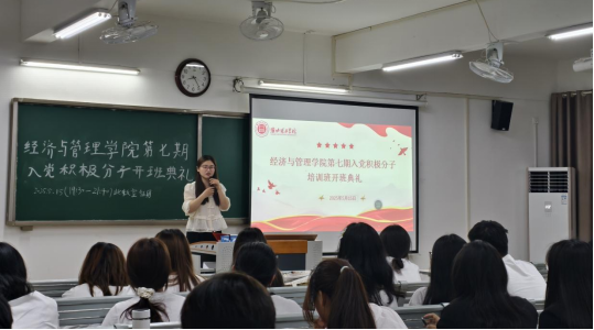 典礼伊始,管理学学生支部书记石园园发表讲话。她详细解读了《淮北理工学院第七期入党积极分子培训班学员手册》,重点强调课程内容和时间安排,指出本次培训是入党积极分子系统学习党的理论知识、端正入党动机、提升党性修养的重要契机。石书记还对全体学员提出了明确要求,希望学员们珍惜此次学习机会,严格遵守培训纪律并完成相关学习要求(包括学习强国的学习,心得体会撰写等),认真学习党的章程、党的历史和党的基本理论,努力做到学有所思、学有所悟、学有所得,以实际行动向党组织靠拢。