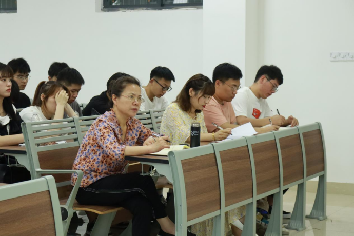 员禹辛老师作为辅导员代表进行发言,她提出,在这学期的辅导员工作中,对学生有了新的认识,针对学生管理,也制定了相关细则,从团支部职责,班委会职责,学生干部职责,班级活动,寝室文化建设等方面进行分工和细化;在与学生交流方面,针对不同的学生类型,采取新颖的交流方式;在班级例会中,以较传统的方式,具体的实例来塑造集体的凝聚力,向心力和荣誉感。最后分享了近一年以来作为辅导员的心得体会,她认为与学生相处,不能积虑,但一定要处“心”,多一份情感交流,就多一份教育的希望和成功,与学生做到心灵交融,是每个教育工作者最大的成功,更是强化班风学风建设的基石。