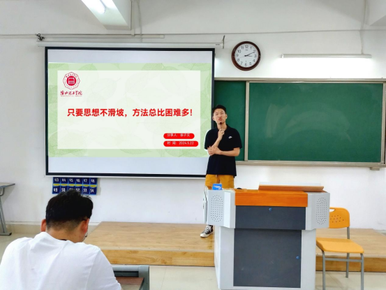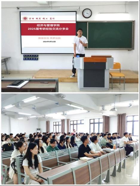 活动最后,叶赵强做总结发言。首先再次对考研成功的同学表示祝贺;其次他表示今年学校为鼓励学生考研,特开设免费的考研辅导培训班,希望大家积极参加能够有所收获;最后,他对2025届即将考研的学生提出了几点要求和希望,希望同学们做好大学人生规划,早准备、早实践;要有毅力、有韧性、会坚持;要摆正心态、正视最终结果;希望同学们考研路上要有认真踏实的态度、迎难而上的品格、坚持不懈的努力,期待2025届经管学子能够满誉而归。
