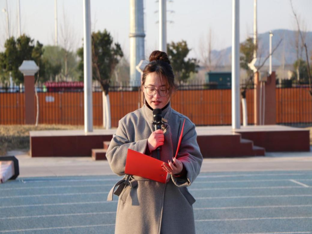 每周一的清晨,国旗护卫队的队员们步伐坚定、精神饱满,护送着鲜艳的五星红旗缓缓走向升旗台。随着激昂的《义勇军进行曲》响起,五星红旗冉冉升起,在晨光中迎风飘扬,点燃了全体师生的爱国情怀,也激发了大家对新学期的奋斗期待。