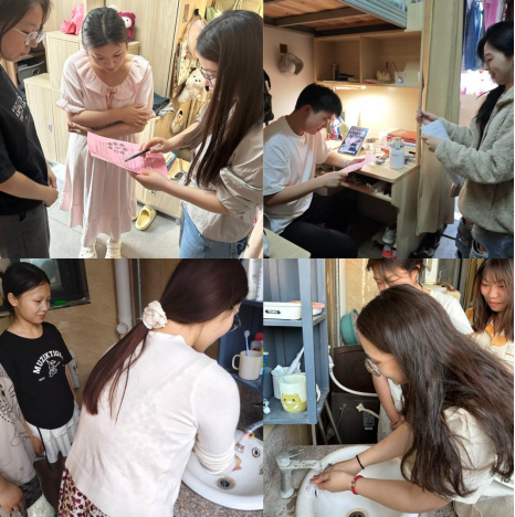 全体辅导员携党员、入党积极分子构成的“宿舍焕新导师团”二进宿舍,通过“书桌收纳”、“床铺整理”等场景亲身示范内务整理技巧。全院50余间宿舍开展“健康承诺书”签订。同步启动“三勤打卡挑战赛”,近300名学生通过小程序上传整理书桌、地面清洁等实景照片,形成“比学赶超”的良好氛围。
