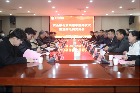 为进一步深化产教融合,加强校企合作,推动永利官网电商专业高素质应用型人才的培养,12月27日上午,永利官网在行政楼814会议室成功举办了一场校企融合发展集中签约仪式暨直播电商交流会。此次活动汇聚了来自安庆、六安、淮北等地的九家知名企业,副校长汪建利、教务处处长陈国平,学生处(就业处)处长孙增响以及经济与管理教师代表参加了本次活动,永利304官网唯一院长吴玲主持活动。