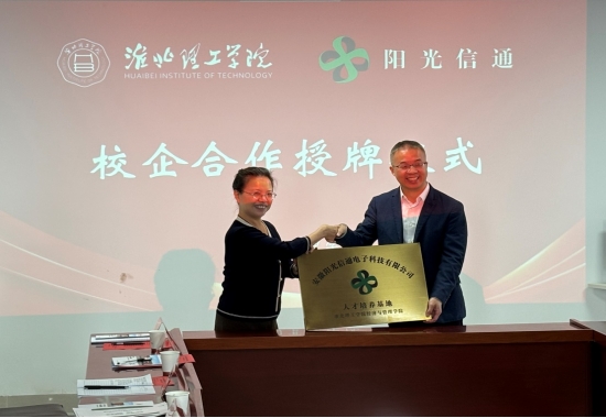 双方通过交流研讨达成合作共识,程中平代表企业为学校授“人才培养基地”牌匾,标志着双方的合作迈向了实质性的阶段。