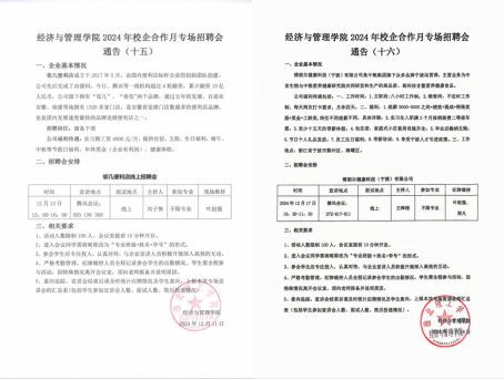 为进一步拓宽就业渠道、丰富学生的职业选择,积极推进2025届毕业生就业工作,永利304官网唯一于2024年12月13日和12月17日成功举办了安徽邻几便利店有限公司和博朗尔健康科技(宁波)有限公司的专场招聘会。本次系列活动通过腾讯会议在线举行,吸引了众多2025届毕业生的积极参与。