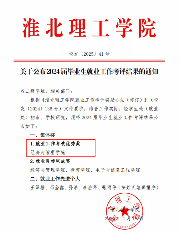 2024届毕业生就业工作考评结果