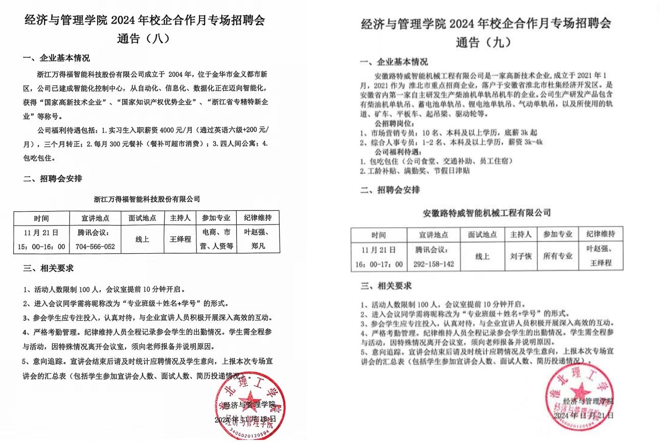 学院深刻认识到产教融合在提升毕业生就业质量中的重要作用,因此,我们积极与企业、行业协会等合作,深化产教融合,推动教育教学与产业需求的深度融合。2024年,学院积极与美团等多家知名企业合作,共建实习实训基地。这些基地不仅为毕业生提供了真实的职业环境和实践机会,还让他们能够在实践中深入了解行业发展趋势和市场需求,从而有针对性地提升自己的专业技能和综合素质。11月,学院承办“才聚濉溪 智创未来”2024年濉溪县“招才引智高校行”电子商务专业专场招聘活动,10余家电商行业的领军企业参与,专场招聘会不仅促进了校企政三方的深度合作,同时也为学院的电子商务专业学生提供了一个展示自我、对接企业的宝贵平台。12月,为进一步深化产教融合,加强校企合作,推动我院电子商务专业高素质应用型人才的培养,我院与来自安庆、六安、淮北等地的九家知名企业成功进行了集中签约仪式,正式确立了校企合作关系。